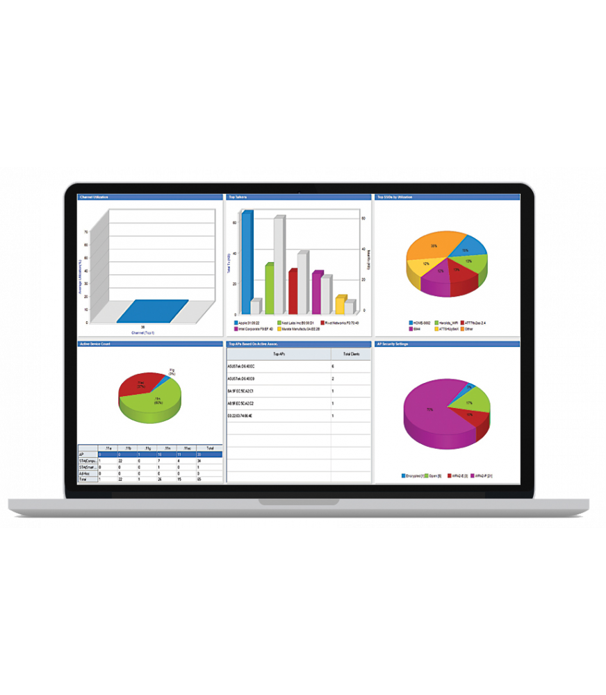 L'AirMagnet WiFi Analyzer PRO détecte et diagnostique automatiquement des dizaines de problèmes courants de performances du réseau Wi-Fi, des menaces de sécurité et des vulnérabilités du réseau sans fil, permettant au personnel informatique de résoudre rapidement les problèmes des utilisateurs finaux. Cet outil détecte les problèmes de débit, les problèmes de connectivité Wi-Fi, les conflits de périphériques, les problèmes de trajets multiples et bien plus encore - et dispose d'un moteur de rapport de conformité complet, y compris PCI sans fil, SOX et ISO.